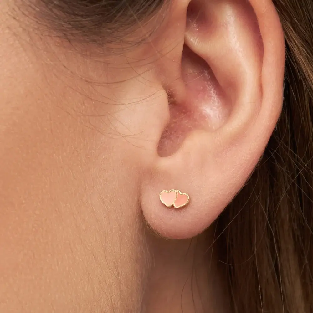 2Hearts earring 1 pcs gold plated