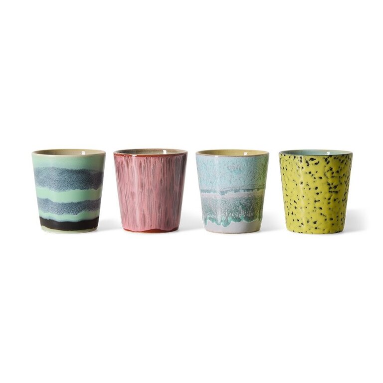 70s ceramics: coffee mugs artistic, set of 4