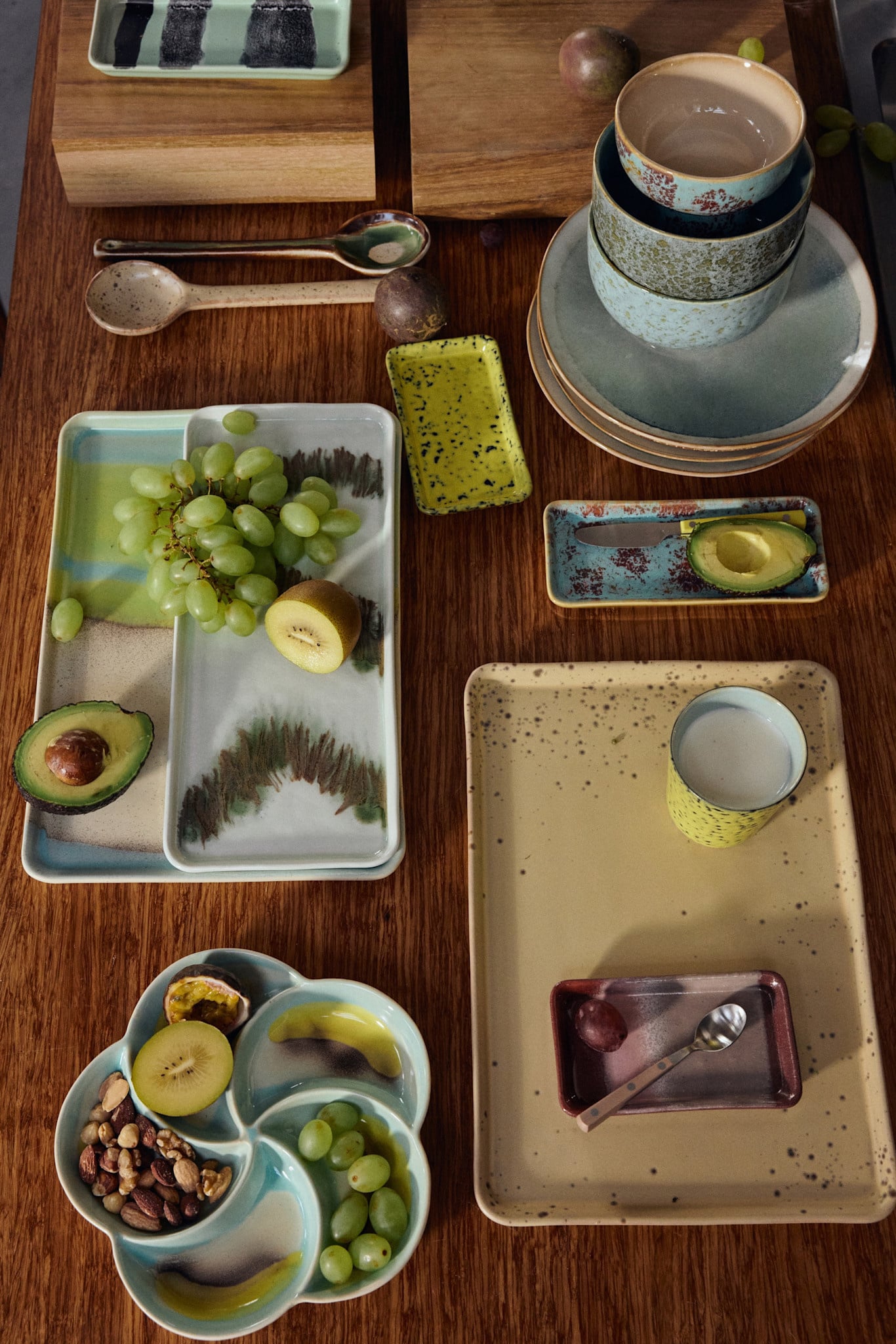 22,5x33x2cm The Glint large tray plays with colour blocks and fluid transitions, creating a finish that feels energetic and artistic. A statement piece that elevates everyday serving, while also working beautifully as a decorative object.