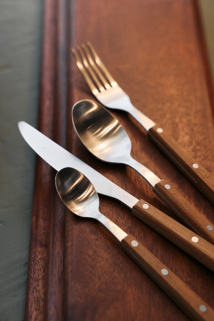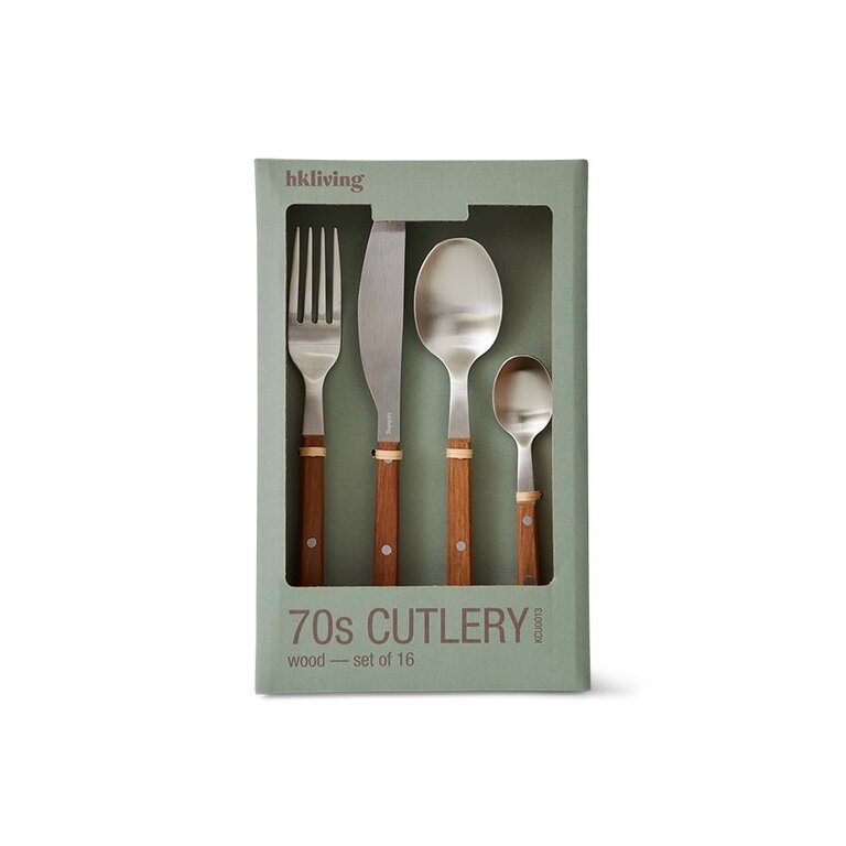 70s cutlery: wood set of 16