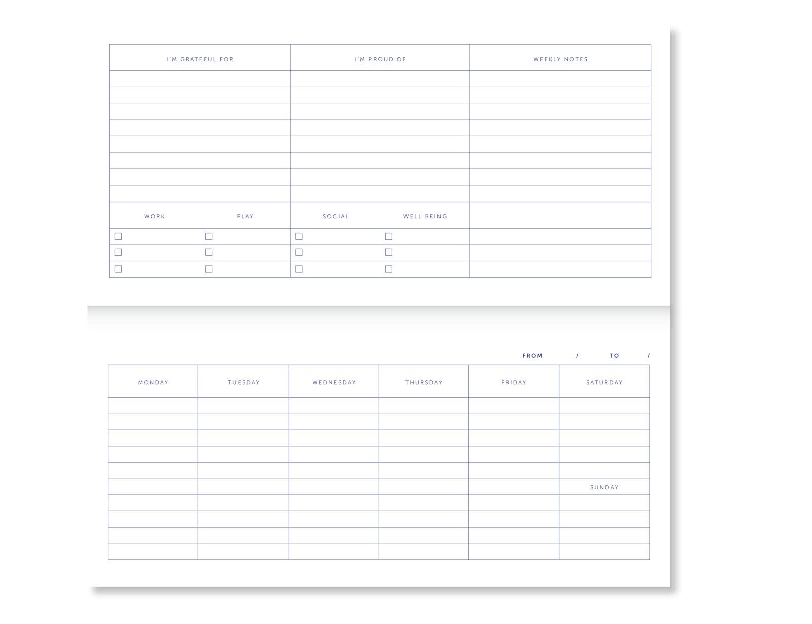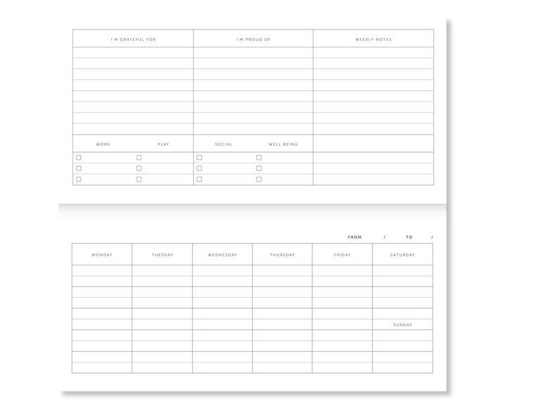 Een handige weekplanner waar je echt wat aan hebt. Het binnenwerk bestaat uit een strak en minimalistisch ontwerp, elke pagina is aan beide kanten te gebruiken en dit alles in de vorm van een handig scheurblok. Zo begin je elke week weer met een schone le