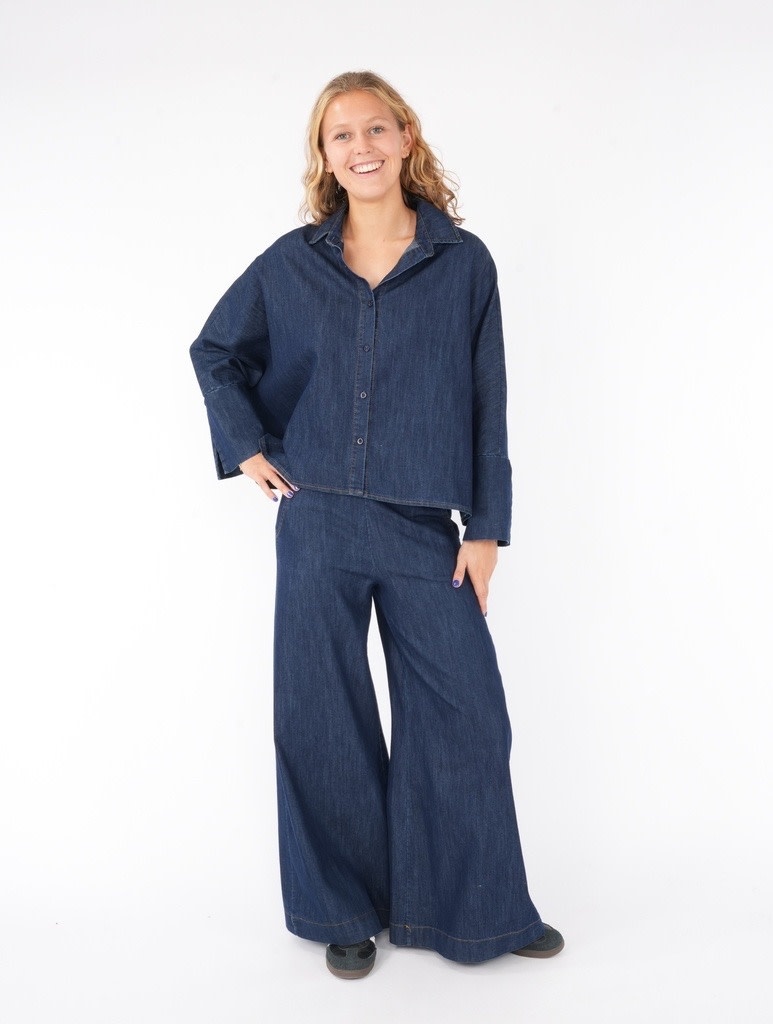 Wijd vlinderhemd in jeansstof met brede manchetten en kraag. Katoen