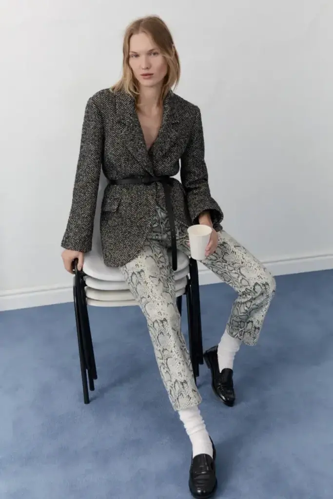 Our snake print denim pants with 5 pockets, a yoke on the back, and a straight fit.