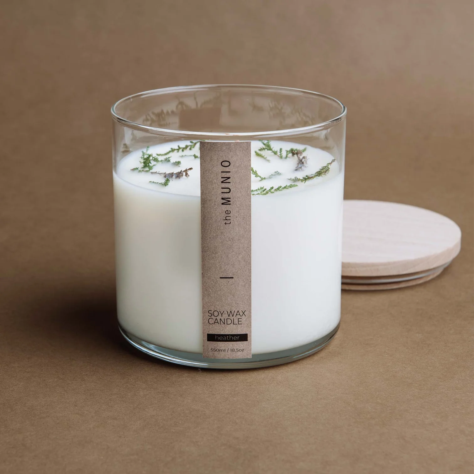 Fragrance: heather | Volume: 550ml | Dimensions: Ø 8cm x H 10cm | Burn time: 50h