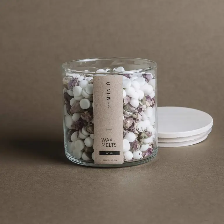 Rose soy wax melts in a glass votive