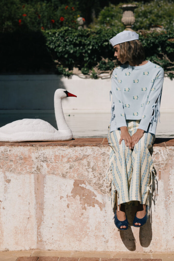 FLOWERS ELASTICATED PANTS *pastel yellow*