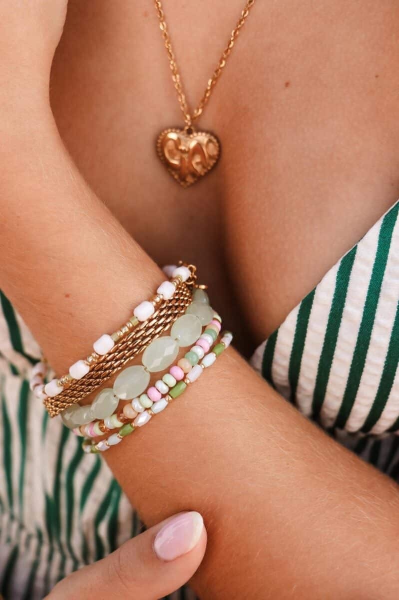 Lengte = 17,5 cm Handgemaakt Stainless steel & gold plated De sluiting is gemaakt van roestvrij staal en is daardoor enorm sterk en kleurvast