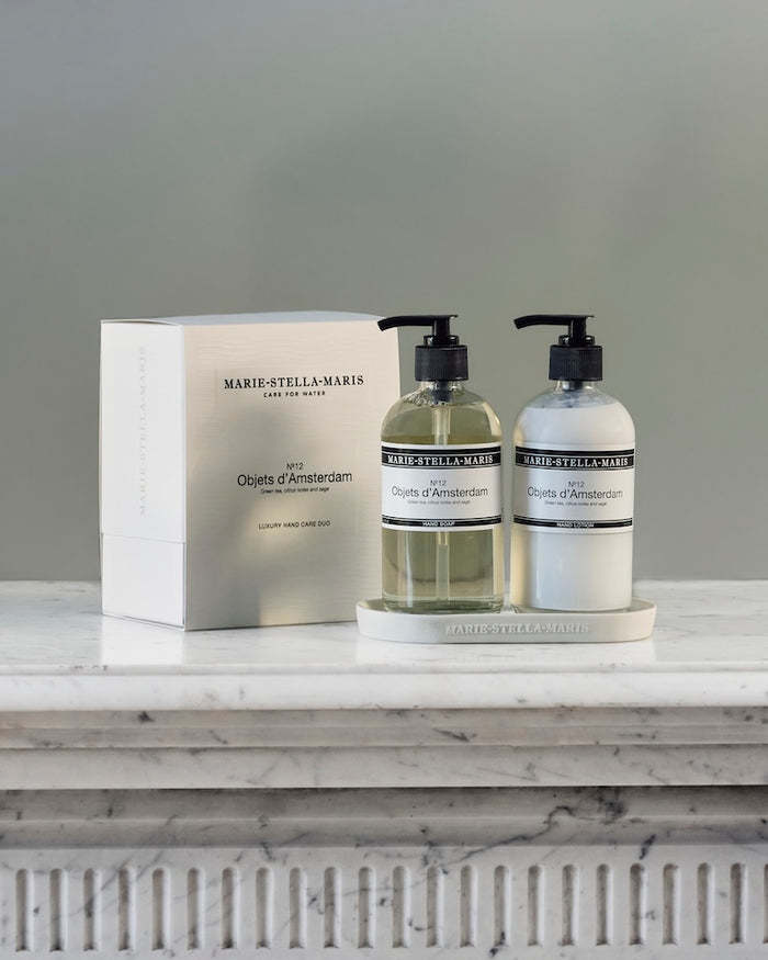 Account aanmakenThis luxurious gift set includes a hand soap and a hand lotion for a complete hand care routine. With its elegant tray, this set is a real eye-catcher in your kitchen or bathroom. Our natural hand soap gently cleanses and hydrates your skin. The hand lotion formula is enriched with shea butter and sunflower oil, for extra hydration and nourishment. Choose one of four unique scents!
