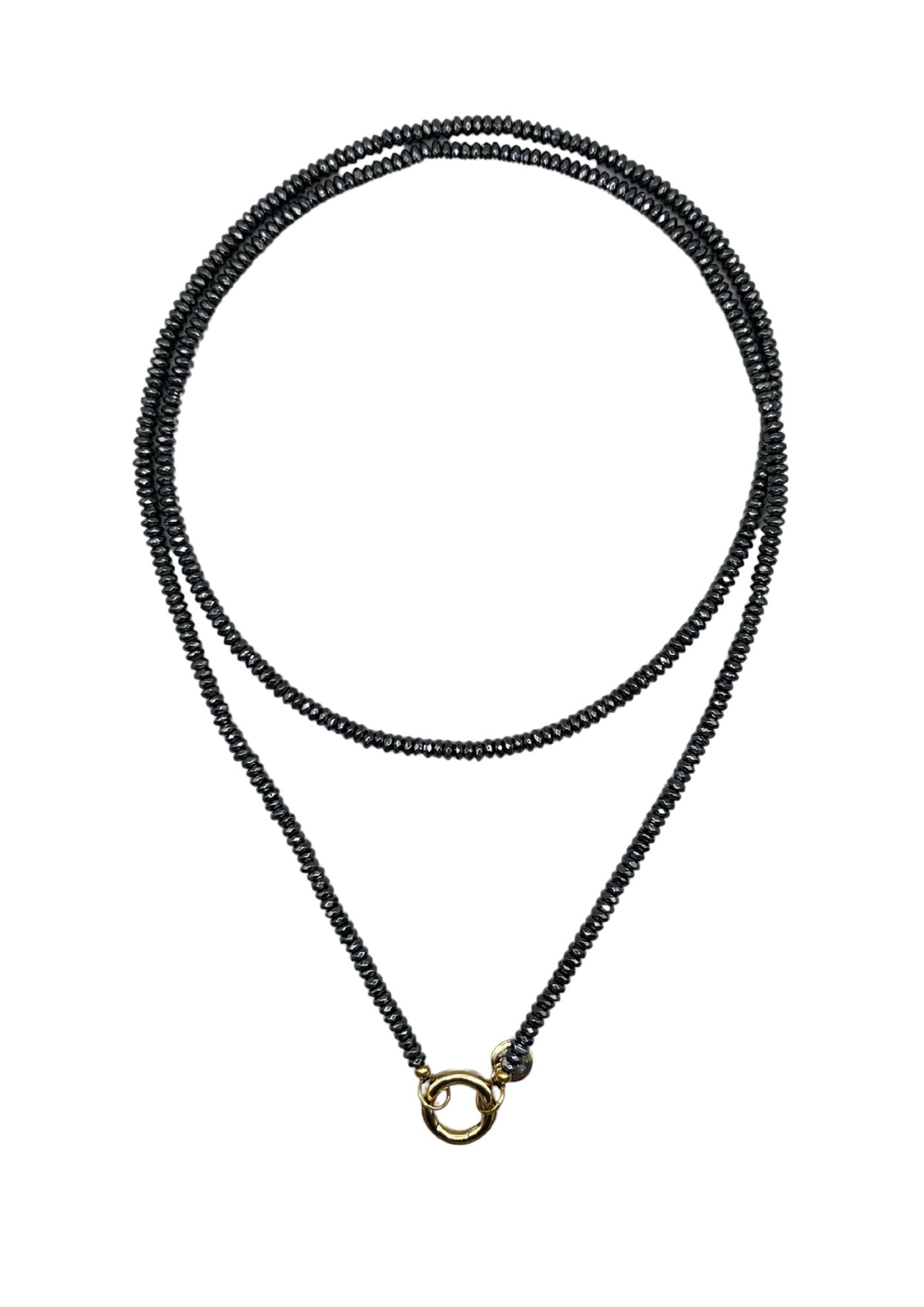 A sleek and edgy option, this graphite-toned necklace catches the light with every move. A strong, modern accent that elevates any outfit. ~ Length: 85 cm ~ Stainless steel 14K gold plated clasp ~ Minimal look, maximum effect