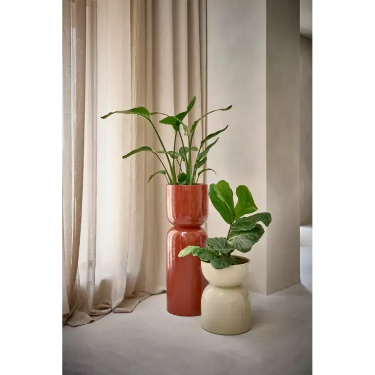 Mimea, een harmonieuze verbinding tussen natuur en design. De Mimea plantenpotten collectie is uit lichtgewicht aluminium en afgewerkt in aardse tinten. Met hun organische vormen en warme kleuren geven ze elke plant een podium, van woonkamer tot overdekt