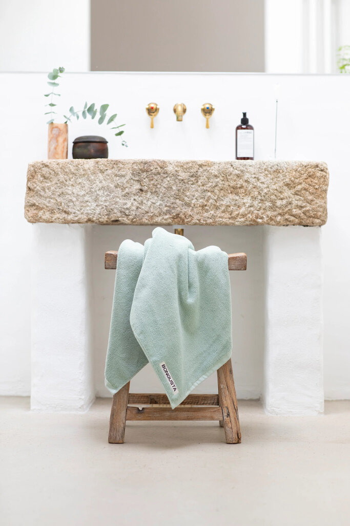 Naram Towel features a decorative Bongusta label logo embroidered on the front, adding a touch of elegance to the design. The towel has a thick terry surface across its entire area, ensuring a soft and comfortable feel against the skin. For convenience, the towel comes with a practical loop that allows you to hang it.