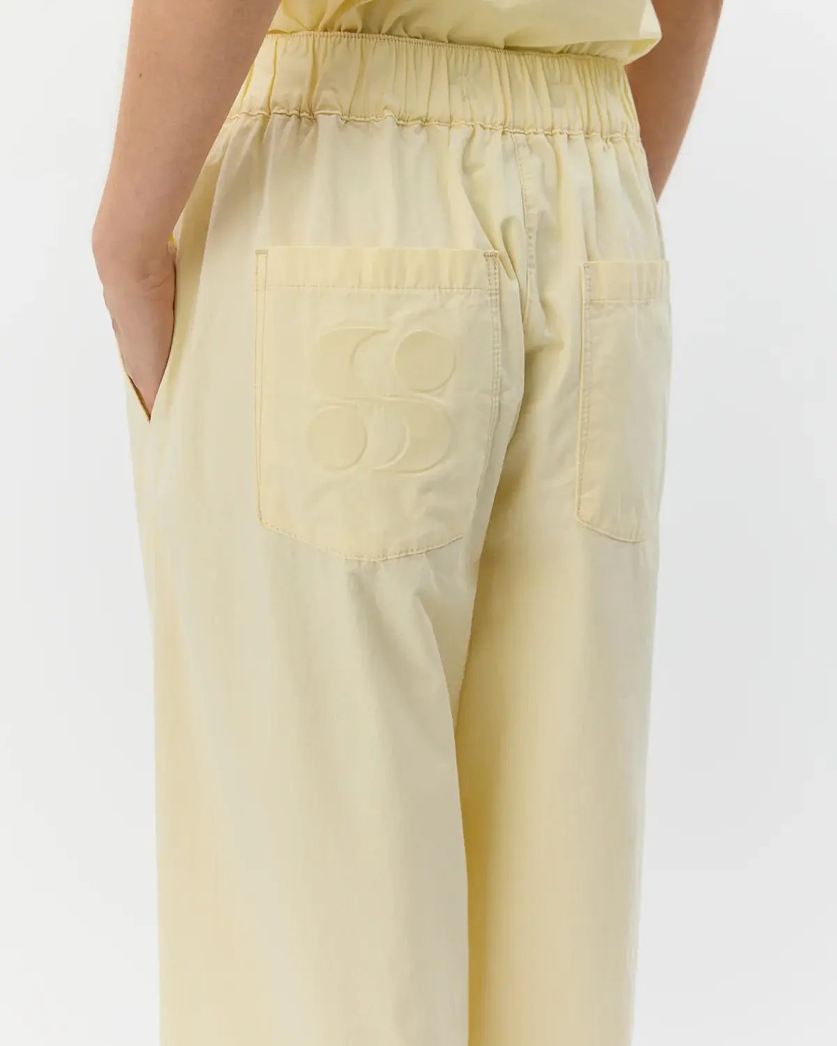 Trousers • Wide leg • Mid-waist • Regular • Concealed closure • Belt loops • Elasticated back waist • Side and back pockets with logo detail • The model is 179 cm tall and wears size S