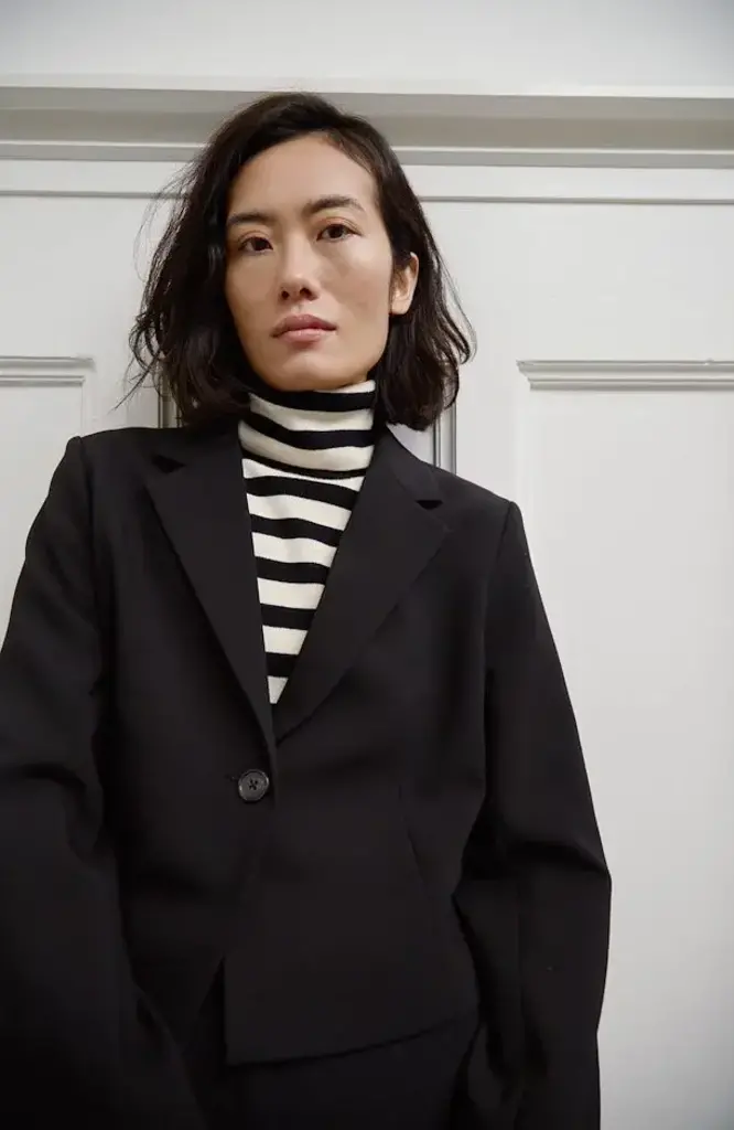 Account aanmakenKnitted turtleneck sweater with long sleeves. The sweater features a classic striped pattern and a slim fit, providing a stylish and timeless look.