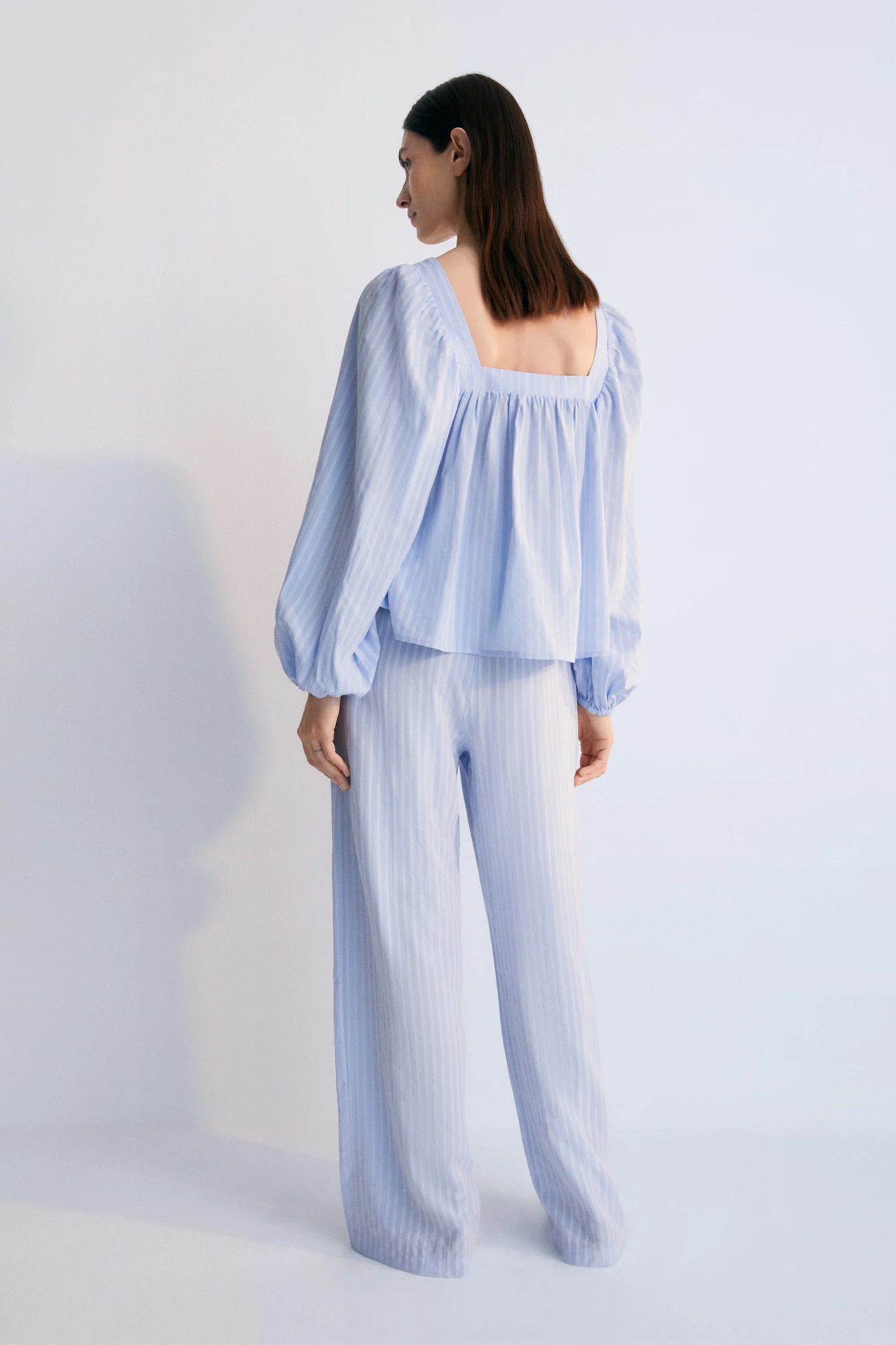 Account aanmakenThe Symi Woman Blouse is crafted from 100% Tencel striped fabric, offering a light and airy feel. Its square neckline adds a modern touch, while the gathered details create beautiful volume. Elastic cuffs enhance the flowy, relaxed silhouette, making it the perfect complement to the Symi Woman Pant or as a standalone piece for a chic, effortless look.
